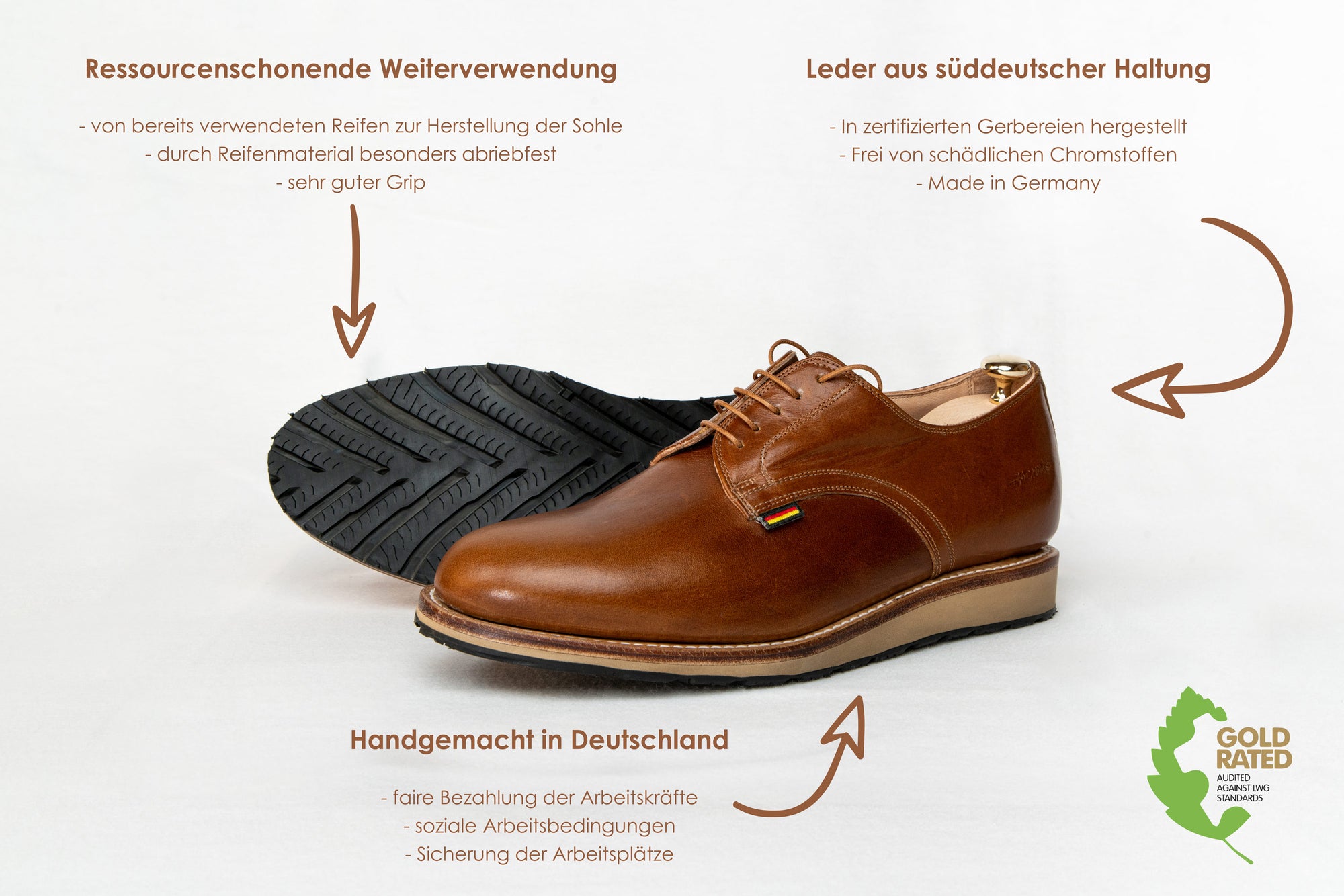 Unsere Schuhe werden auf höchstem Niveau in Handarbeit gefertigt. Damit Sie langfristig und nachhaltig zufrieden mit dem Schuh sind, geben wir Ihnen 3 Jahre Garantie auf unsere handwerkliche Arbeit.